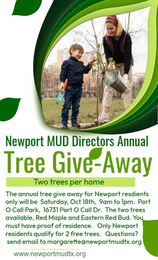 Newport MUD Directors Annual Tree Give-Away, October 18
